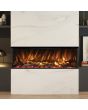 The Arteon inset electric fire is designed to allow a one, two or three-sided installation, which is a new innovation in versatility. With the 5D flame effect, glowing ember effect and new realistic, hand painted log display, the panoramic design creates a beautiful visual impact. The Arteon is one of the most technologically advanced electrical fires, with 3 flame color settings combined with 13 fuel bed colors that can be coupled to an optional LED mood lighting kit. This kit includes a 3 metre LED light strip and a 1 metre cable, which is then controlled using the normal remote control which operates all the other great features. The fuel effect is composed of crystals, pebbles, slate + bark that can be arranged as you like, and the glowing ember bed boosts the fire's realism.