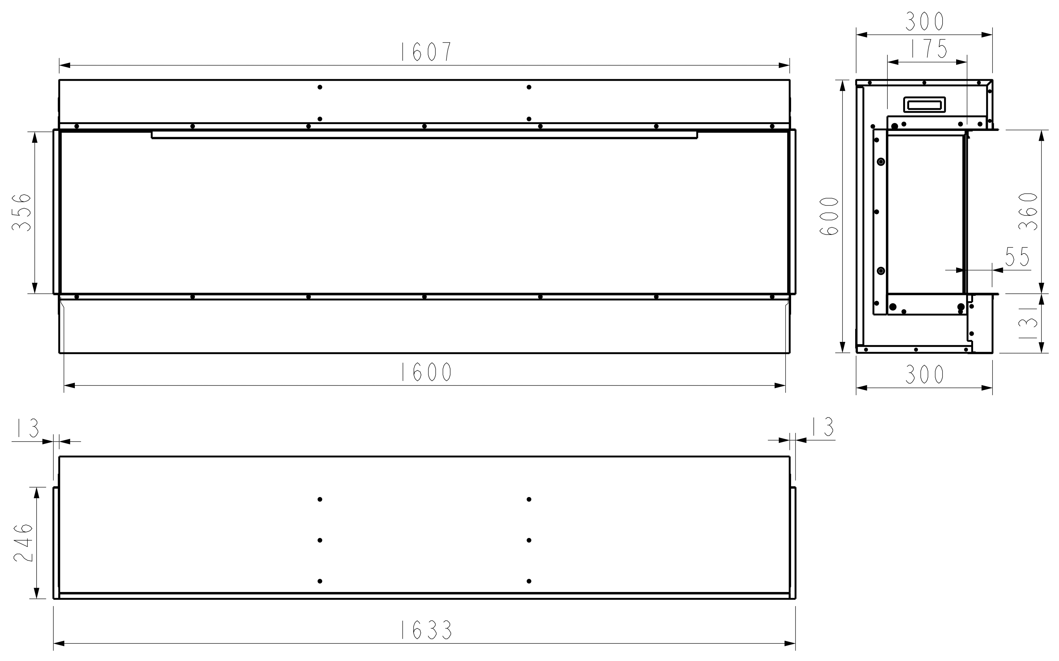 | Specification | <table style="width: auto; border-collapse: collapse; box-shadow: 0 4px 8px rgba(0, 0, 0, 0.1); font-family: Arial, sans-serif;"> <tr><td style="padding: 12px 15px; text-align: center; font-size: larger; border: 1px solid #ddd; background-color: #f0f0f0; font-weight: bold; color: #333;"> Installation </td><td style="padding: 12px 15px; text-align: center; font-size: larger; border: 1px solid #ddd;"> Built in </td></tr> <tr><td style="padding: 12px 15px; text-align: center; font-size: larger; border: 1px solid #ddd; background-color: #f0f0f0; font-weight: bold; color: #333;"> Dimensions: mm </td><td style="padding: 12px 15px; text-align: center; font-size: larger; border: 1px solid #ddd;"> H 600x W 1257 x D 300 </td></tr> <tr><td style="padding: 12px 15px; text-align: center; font-size: larger; border: 1px solid #ddd; background-color: #f0f0f0; font-weight: bold; color: #333;"> Heat Output </td><td style="padding: 12px 15px; text-align: center; font-size: larger; border: 1px solid #ddd;"> 0.9kW - 1.8kW </td></tr> <tr><td style="padding: 12px 15px; text-align: center; font-size: larger; border: 1px solid #ddd; background-color: #f0f0f0; font-weight: bold; color: #333;"> Energy saving LED’s </td><td style="padding: 12px 15px; text-align: center; font-size: larger; border: 1px solid #ddd;"> Yes </td></tr> <tr><td style="padding: 12px 15px; text-align: center; font-size: larger; border: 1px solid #ddd; background-color: #f0f0f0; font-weight: bold; color: #333;"> 3 Sided Glass </td><td style="padding: 12px 15px; text-align: center; font-size: larger; border: 1px solid #ddd;"> Yes </td></tr> <tr><td style="padding: 12px 15px; text-align: center; font-size: larger; border: 1px solid #ddd; background-color: #f0f0f0; font-weight: bold; color: #333;"> Remote handset + manual control operation </td><td style="padding: 12px 15px; text-align: center; font-size: larger; border: 1px solid #ddd;"> Yes </td></tr> </table> |