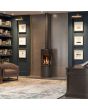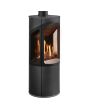 The Onyx Liv 3 combines a sophisticated cylindrical design with stunningly realistic flames and log effects. Adding poise and allure to any interior, this elegant gas stove will create an unmistakably contemporary centrepiece in your home. Beyond the sweeping curves and clean lines, front and side glass panels showcase the Liv 3’s panoramic flames, providing 180° views for maximum visibility. Inside, life-like flame burner technology creates a tall, lazy fire which dances through highly realistic logs. Enhancing the three-sided flame visuals, EchoFlame™ Black Glass provides a mirror polished backdrop to the Liv 3’s flame picture, for increased visual depth and definition. This version is the balanced flue designed for installation in homes with or without a chimney. A choice of dedicated balanced flue kits connect to the stove and expel the fumes produced from the fire either horizontally through the wall behind or vertically through a roof.