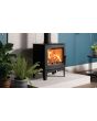 The Stovax Futura 5 Ecodesign Plus stove prioritises spectacular flame visuals and high efficiency heat. Featuring a contemporary exterior with curved door and large expansive viewing window, this stunning log burner is suitable for both traditional and modern homes alike. Delivering high efficiency heat, the Futura 5 incorporates a state-of-the-art convector heat system and integrated heat shields to maximise the amount of heat flowing back into the room, and allow for a lower distance to combustibles. A stylish and responsive stainless steel air control on the front of the stove adds some designer flair and function and allows the stove to be easily switched to boost mode for a quick and easy start up.